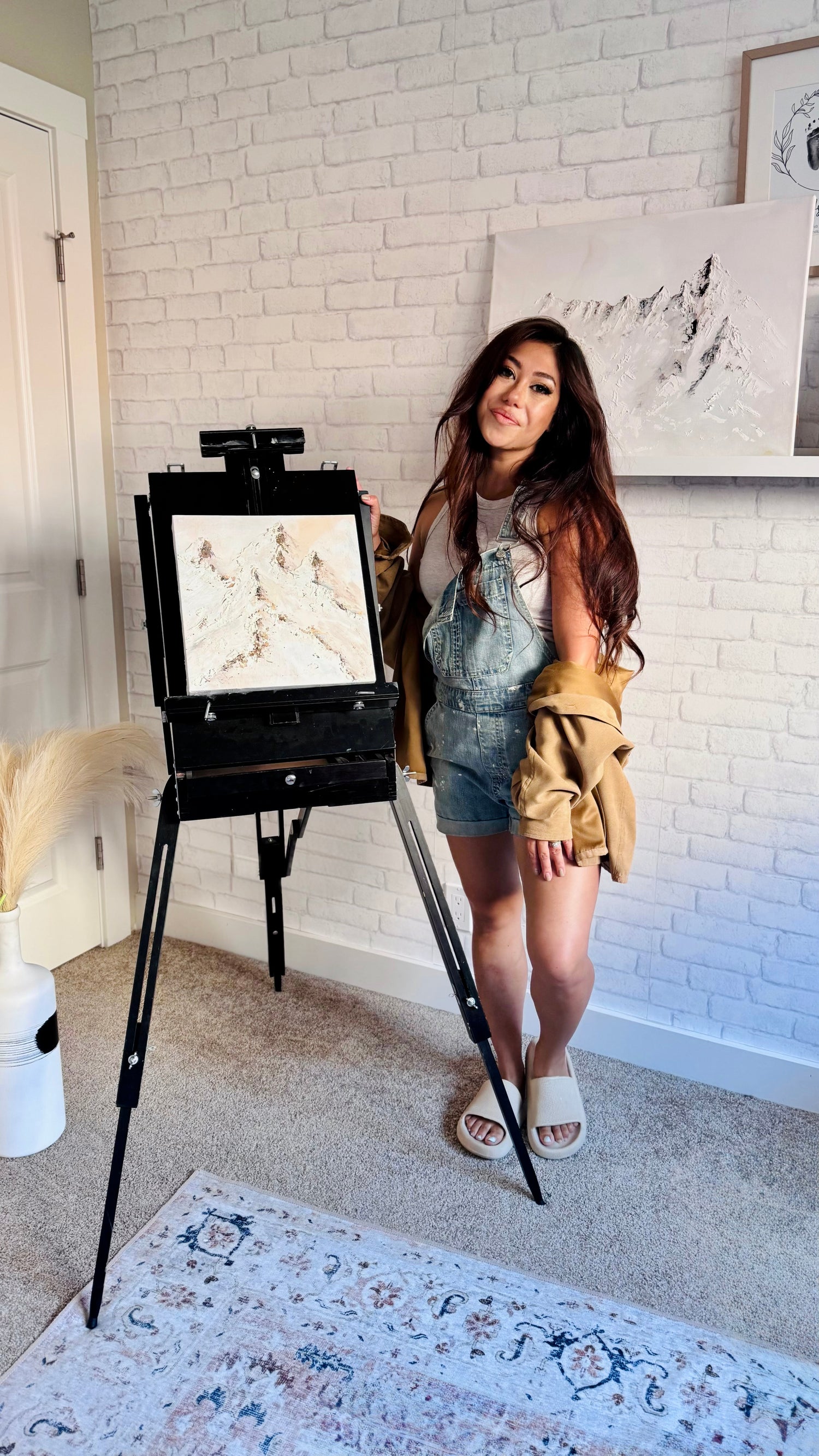Chandice Castle is an Artist based in Northern British Columbia. Inspired by the breathtaking mountains that surround her, she incorporates playful mark-making and invites viewers to engage with vibrant colours, evoking the painterly and whimsical qualities found in snowy mountain landscapes. Each piece is a reflection of her journey, and with every brushstroke, she experiences a profound sense of calm. The mountains symbolize fortitude and resilience—qualities she aims to impart to her viewers.
